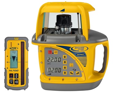 The Spectra Precision GL720 Dual Grade Laser with HL700 Laser Receiver is a high-precision instrument designed for use in construction and surveying applications. This package includes the GL720 Dual Grade Laser, which has a grade range of -10% to +15% and an accuracy of ±1/16 inch per 100 feet (±1.5 mm per 30 meters). The laser also features a self-leveling range of ±5 degrees and rotation speeds of 300, 600, and 900 rpm.
